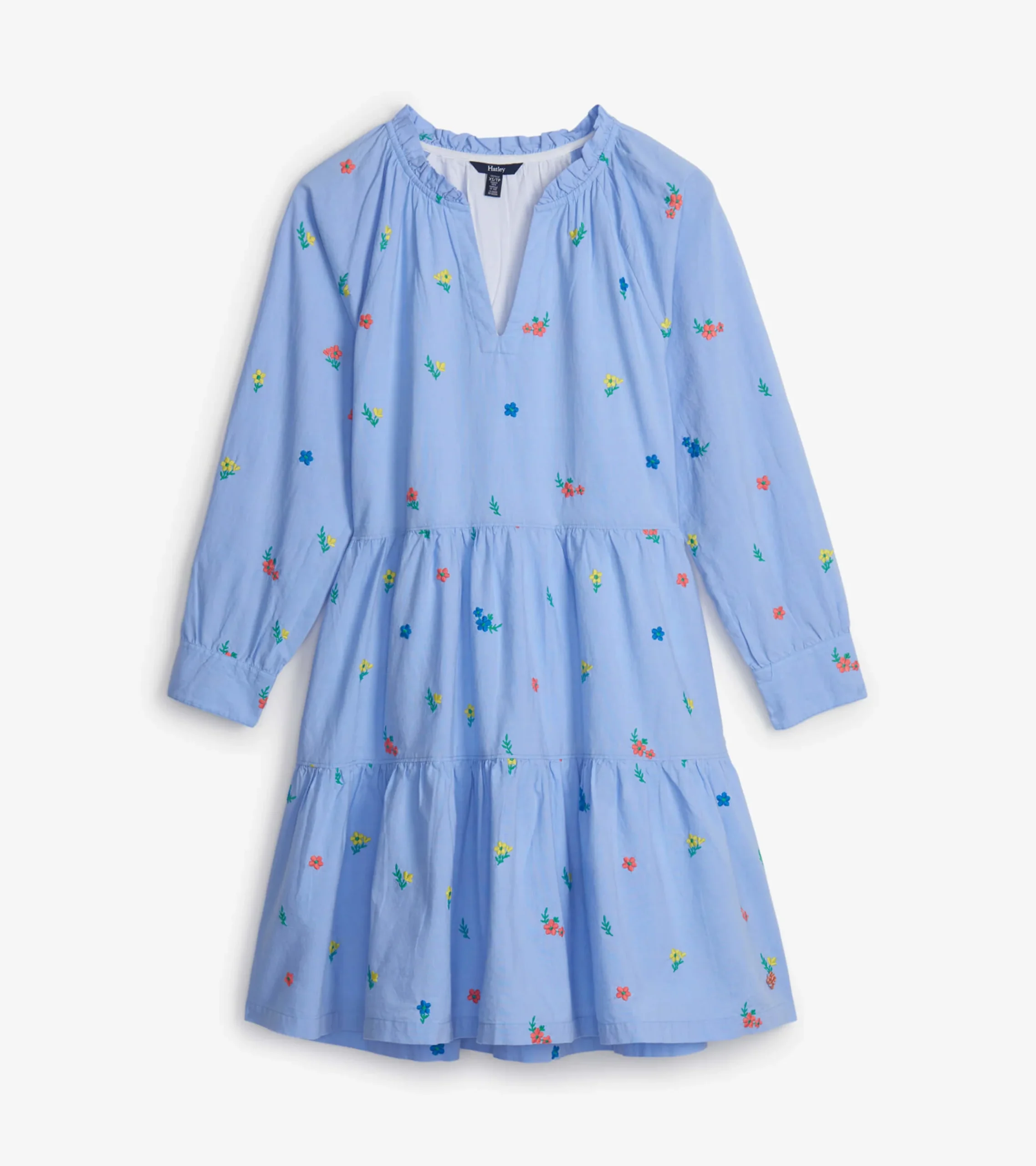 Achetez la robe Hatley pour femme Maddy Fleurs Brodées pour afficher une allure à la fois audacieuse et raffinée. Taillée dans un tissu de popeline de qualité, cette robe à enfiler à taille large et à coupe ample se compose de deux jupes étagées, associées à une encolure crantée et à des manches raglan. Dotée de manchettes fonctionnelles et de poches latérales, elle constitue un choix élégant pour toutes les circonstances.