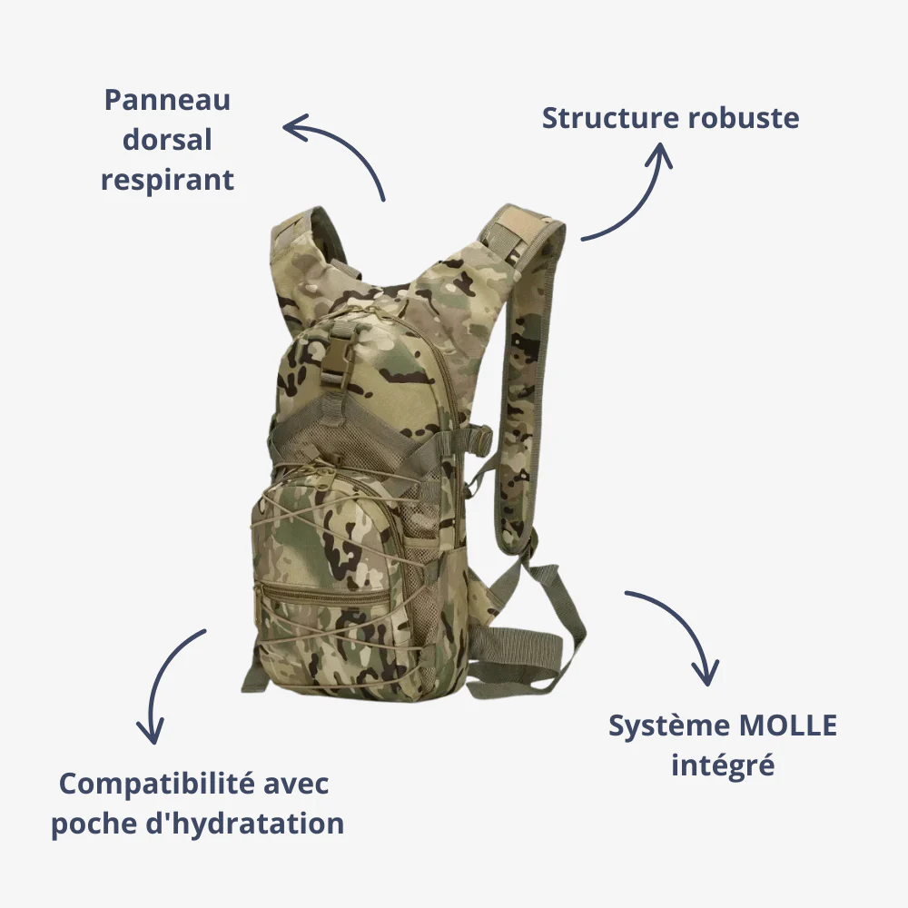 - Système Molle : personnalisation avec des accessoires supplémentaires