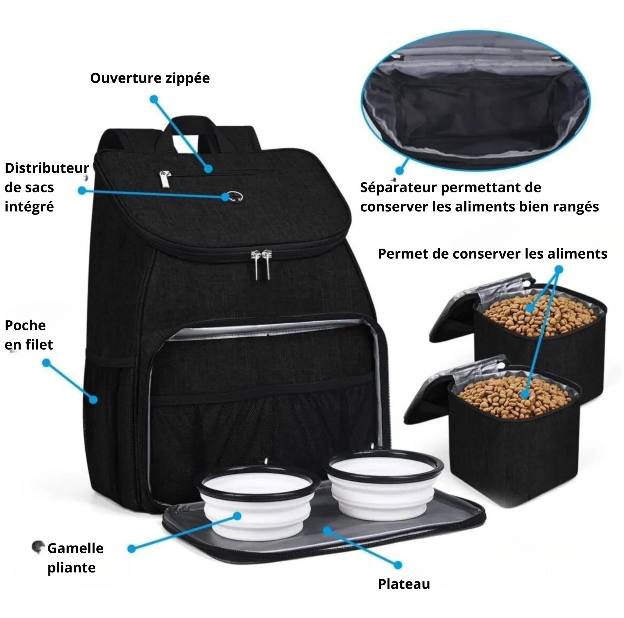 - Contenants pour croquettes : Inclus, un contenant pratique pour le transport et la conservation des croquettes, garantissant que votre animal ait toujours de la nourriture fraîche.
