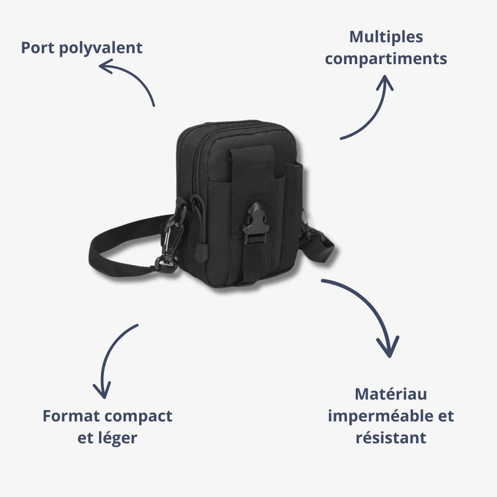 • Compartiments multiples : Espace organisé pour téléphone, clés, outils, etc.