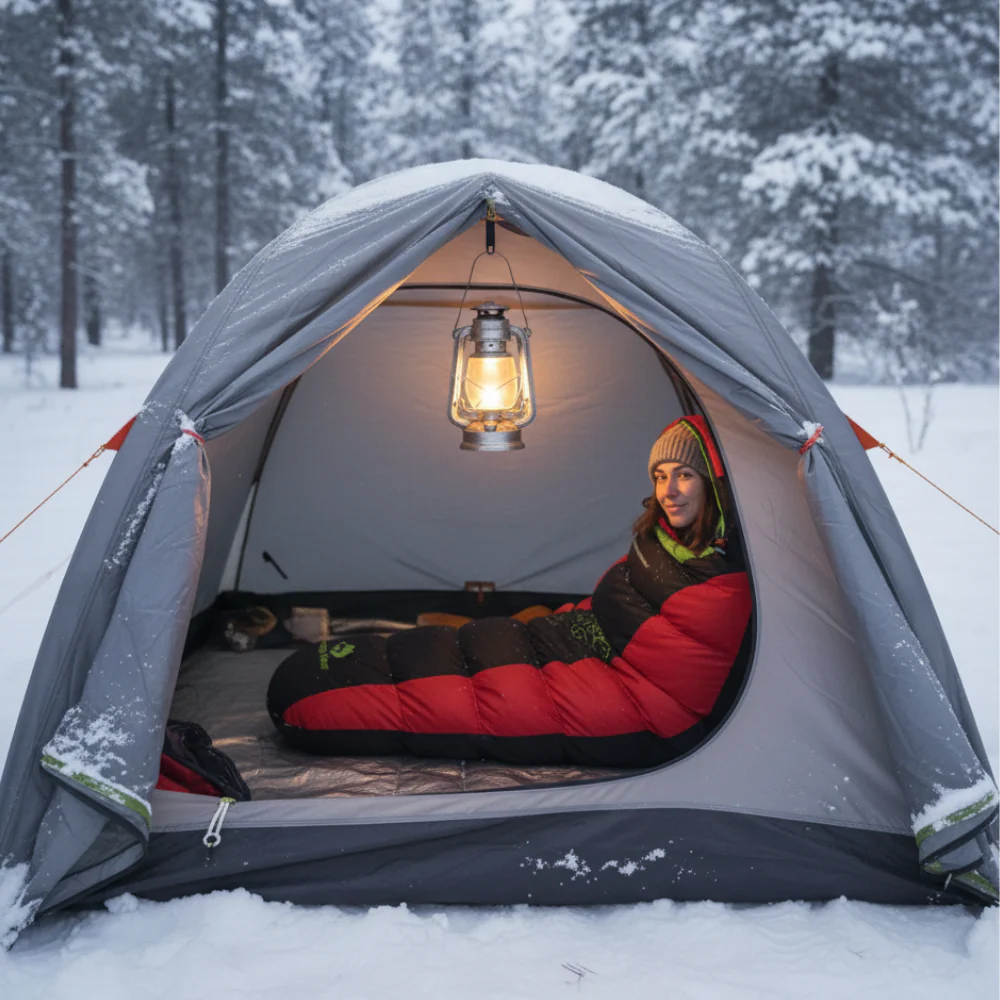 - Garnissage en duvet : Maintien la chaleur tout en restant léger et compressible.