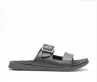 »Un style classique revu pour intégrer des pratiques de fabrication durables, nos sandales pour hommes Marty Slide sont fabriquées de cuir produit dans des tanneries cotées or. Elles sont dotées d’une semelle intérieure EVA recouverte de suède doux pour coussiner vos pieds.»