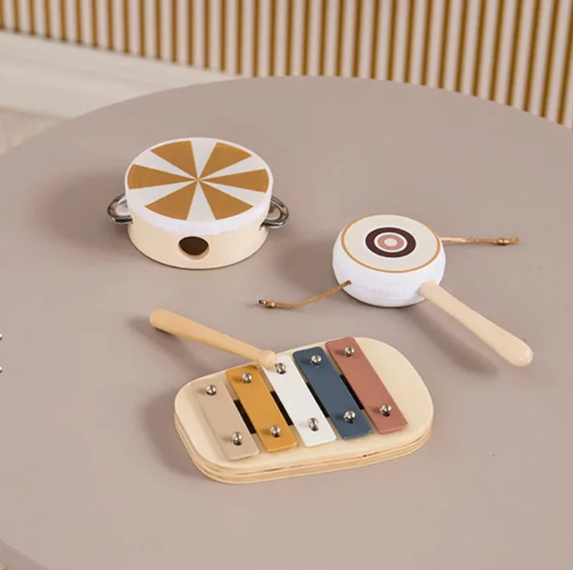 Préparez-vous à faire du bruit ! Cet ensemble musical comprend un tambourin, un mini tambour, une baguette et un xylophone, parfaitement adaptés à la taille des enfants. Après tout, le premier concert de chaque enfant commence généralement par un solo de tambour… directement sur la table de la cuisine. Caractéristique principale :