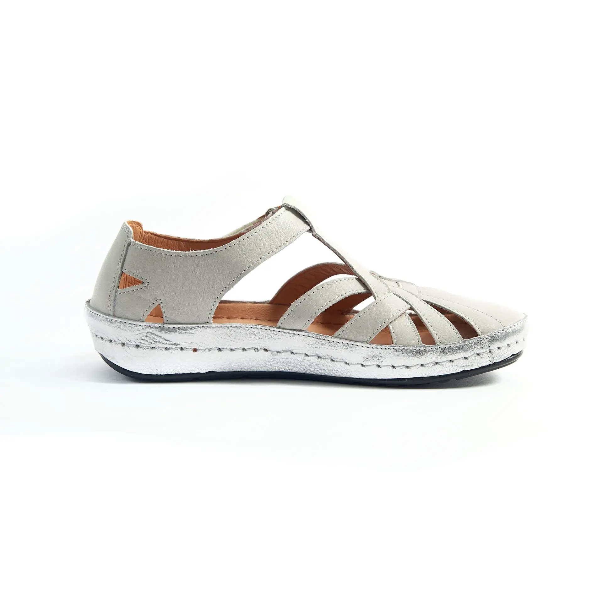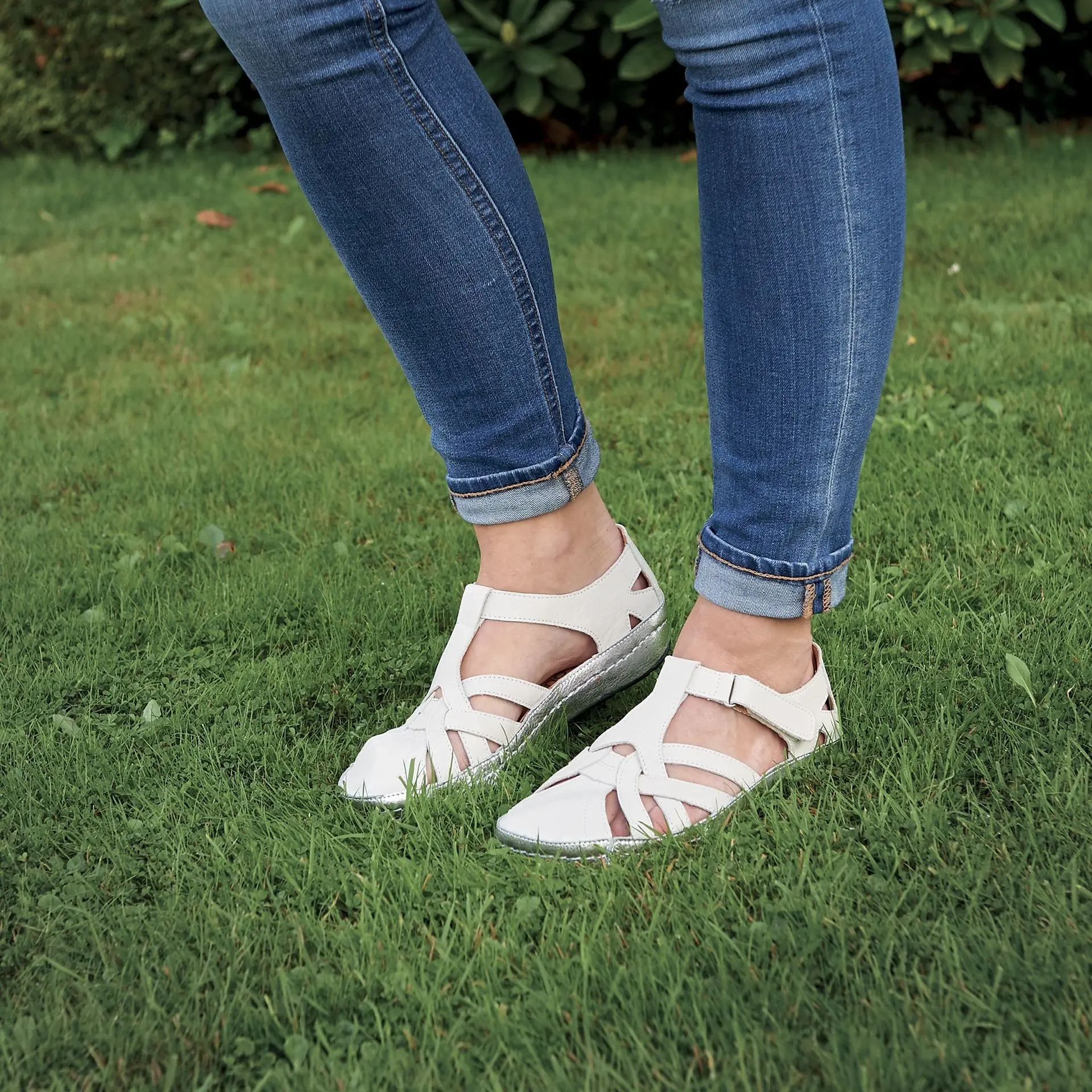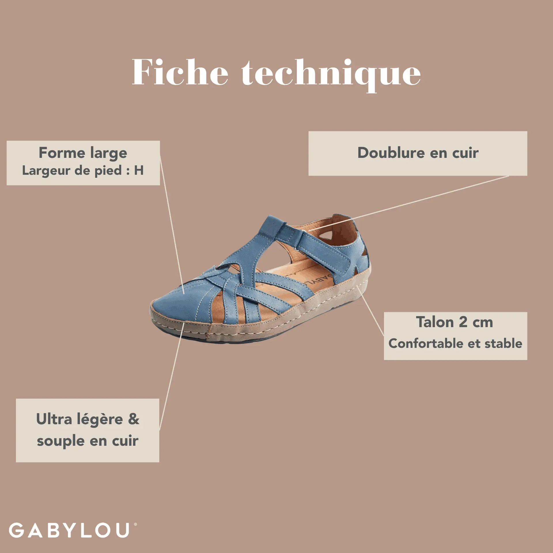 Marie Odile est un modèle de sandales de largeur H de la marque Gabylou. Elle vous ravira par son côté confortable et décontracté sur une semelle plate. légèrement compensée avec une hauteur de 2 cm. une doublure entièrement cuir et une semelle légère et extra souple. De production européenne (Portugal). nous utilisons des cuirs de première qualité dont la souplesse vous garantit confort et longévité.