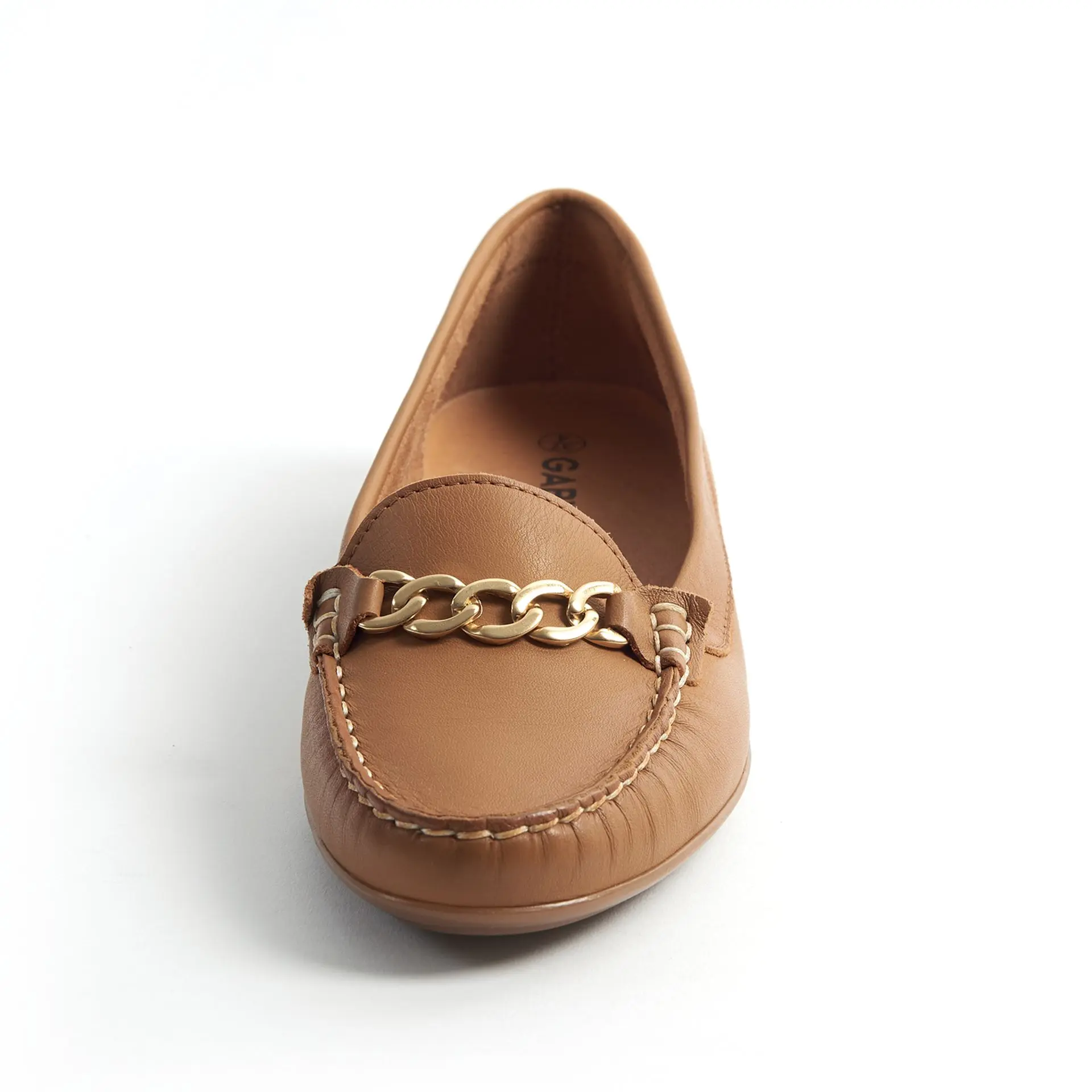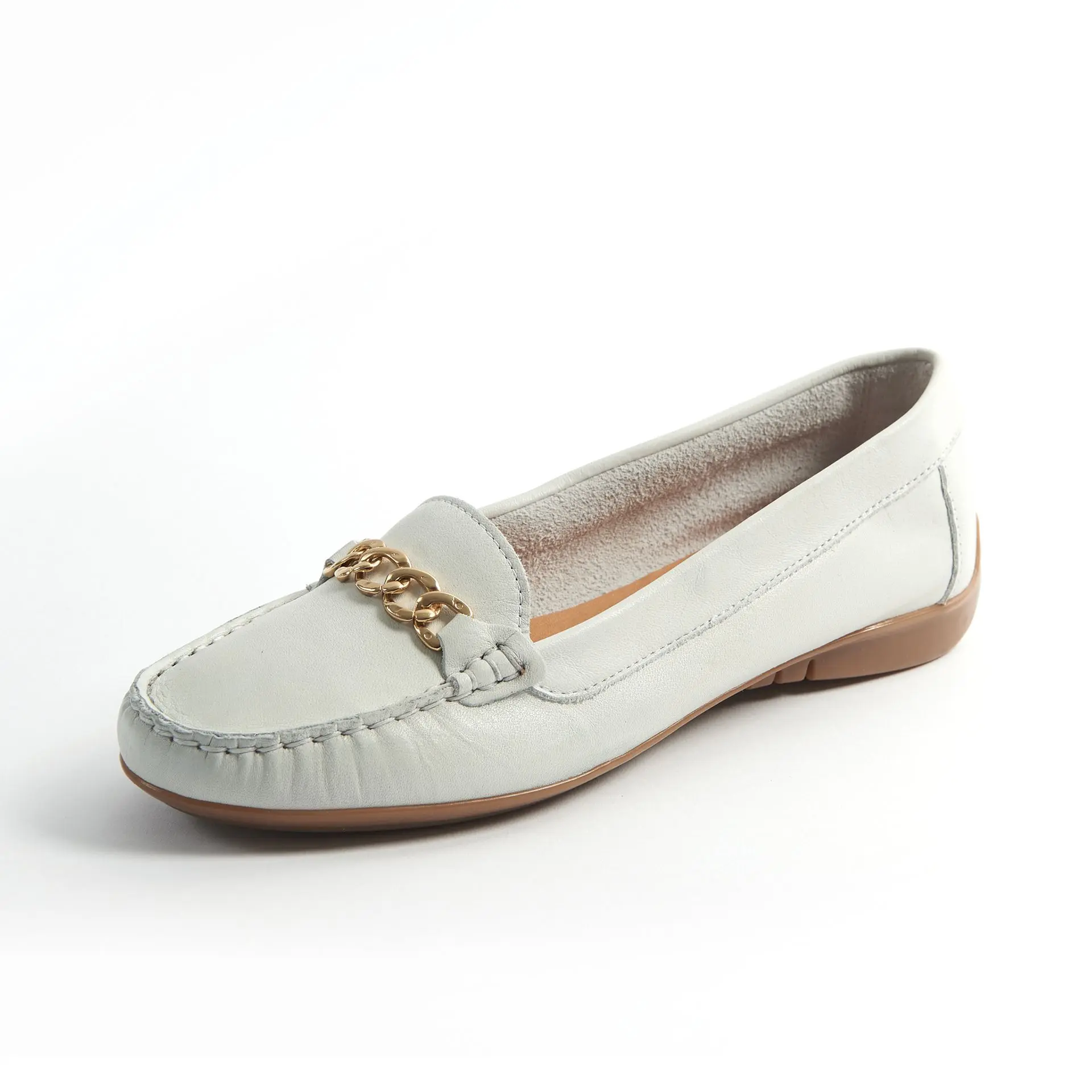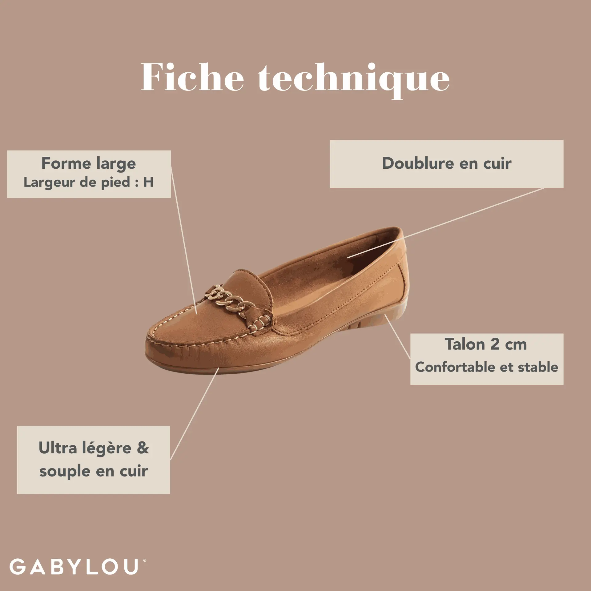 Dans la gamme des mocassins. Gabylou vous propose un modèle avec une chaînette dorée très tendance. Monté sur une semelle caoutchouc très flexible. il vous ravira par sa souplesse et sa facilité à l’enfiler. Muni d’une semelle intérieure cuir amovible. vous pouvez l’interchanger avec vos semelles orthopédiques. Entièrement doublé. il vous procurera une sensation très agréable. De production européenne (Portugal). nous utilisons des cuirs de première qualité dont la souplesse vous garantit confort et longévité.