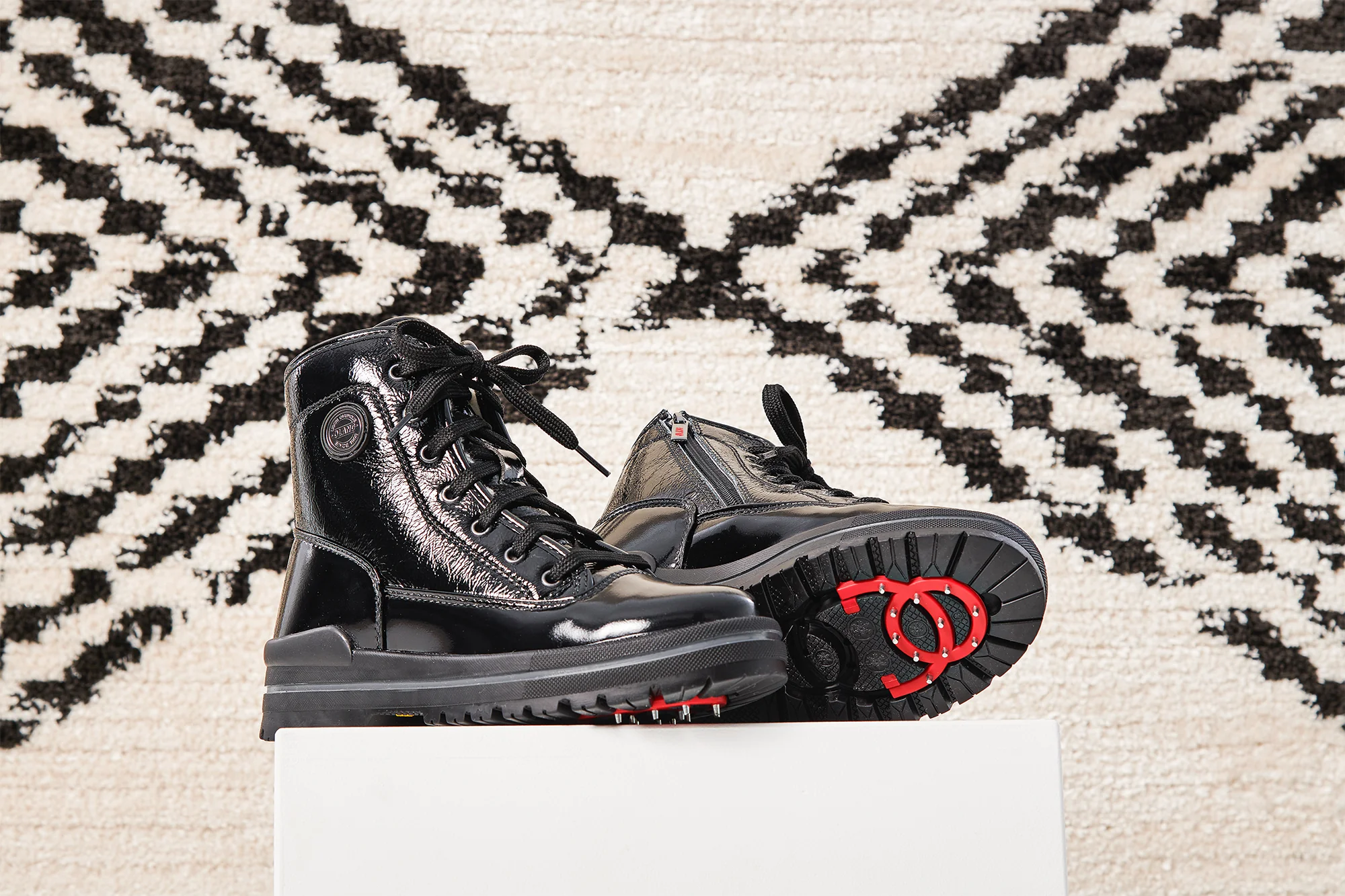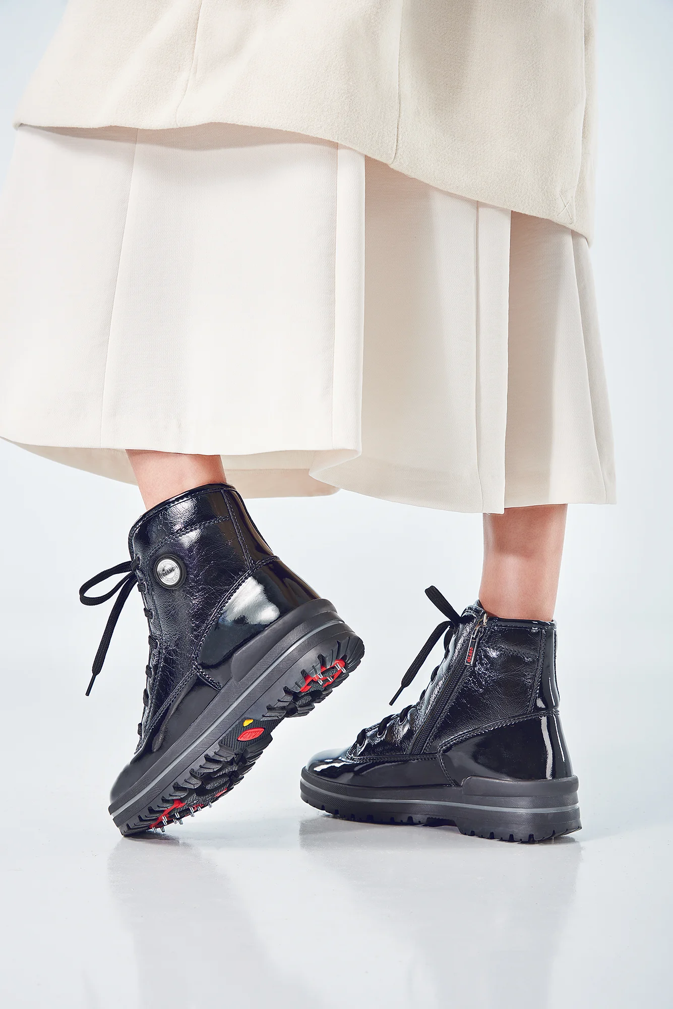 Les bottes d’hiver véganes de style Spoke conviennent parfaitement à la femme urbaine dynamique qui relève les défis d’hiver sans hésitation et qui est constamment en mouvement. Avec son matériel extérieur rappelant l’effet de cuir verni, ces bottes vous garderont non seulement chic tout au long de la saison, mais amélioreront également votre stabilité dans les rues glacées.