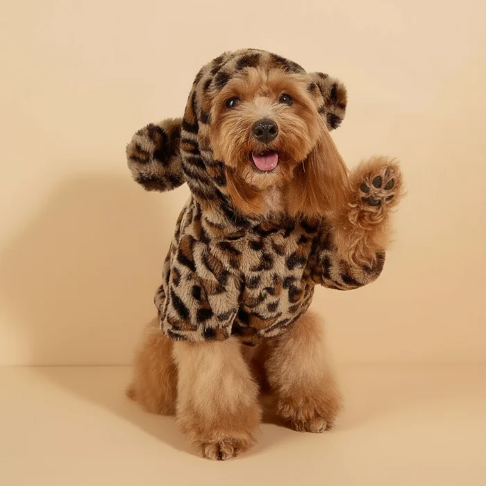 Avec le Sweat À Capuche Léopard pour chien, votre compagnon à quatre pattes sera non seulement à la mode, mais aussi protégé des frimas de l’hiver.