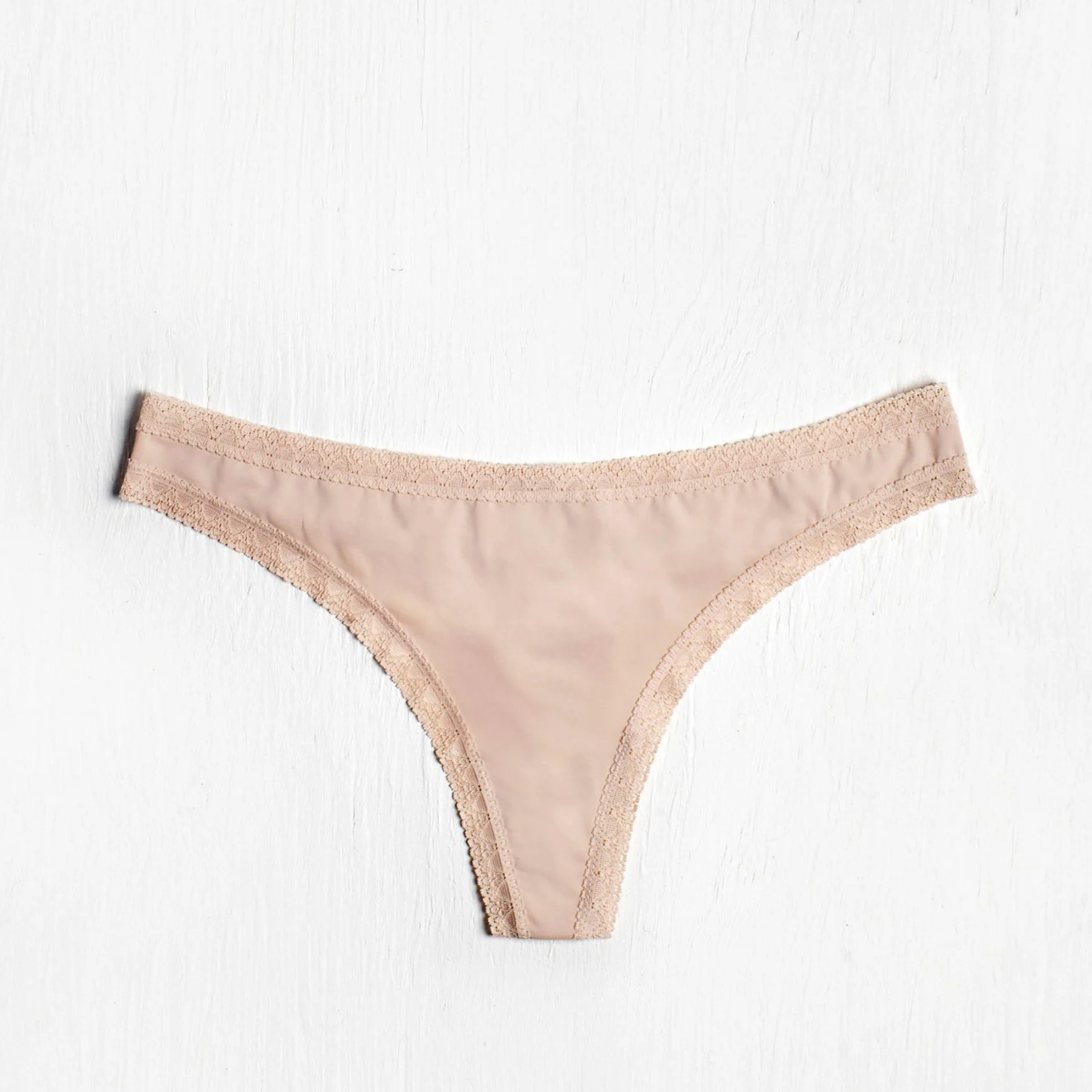 Ornée d’une délicate bordure de dentelle, cette culotte tanga nude en microfibre de tous les jours allie confort et effet seconde peau.