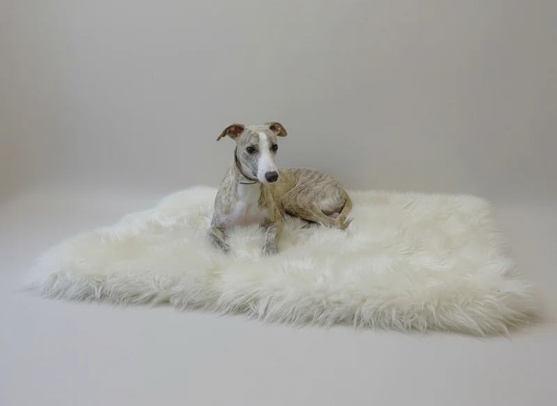 Tapis luxe en véritable peau de mouton rectangulaire pour chien