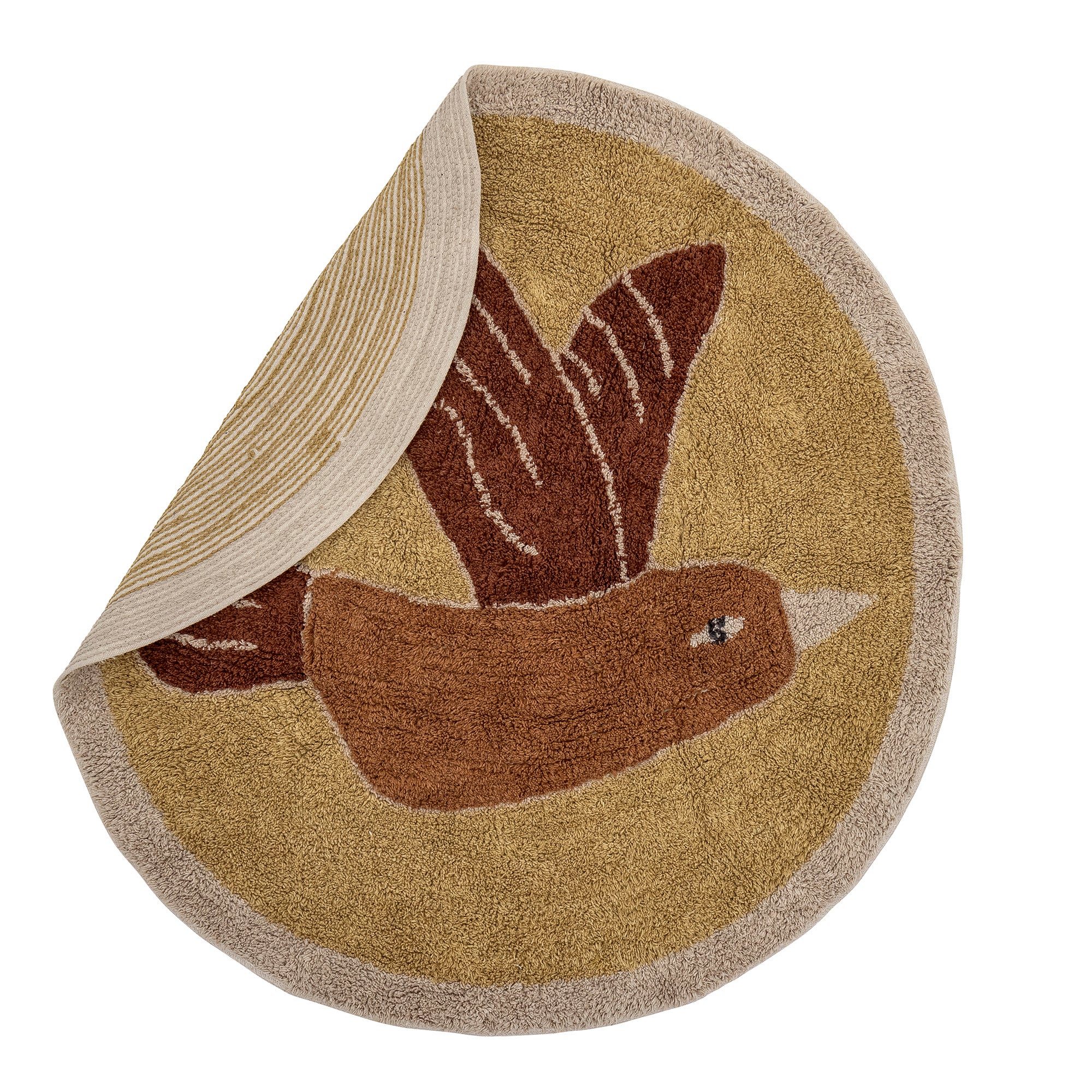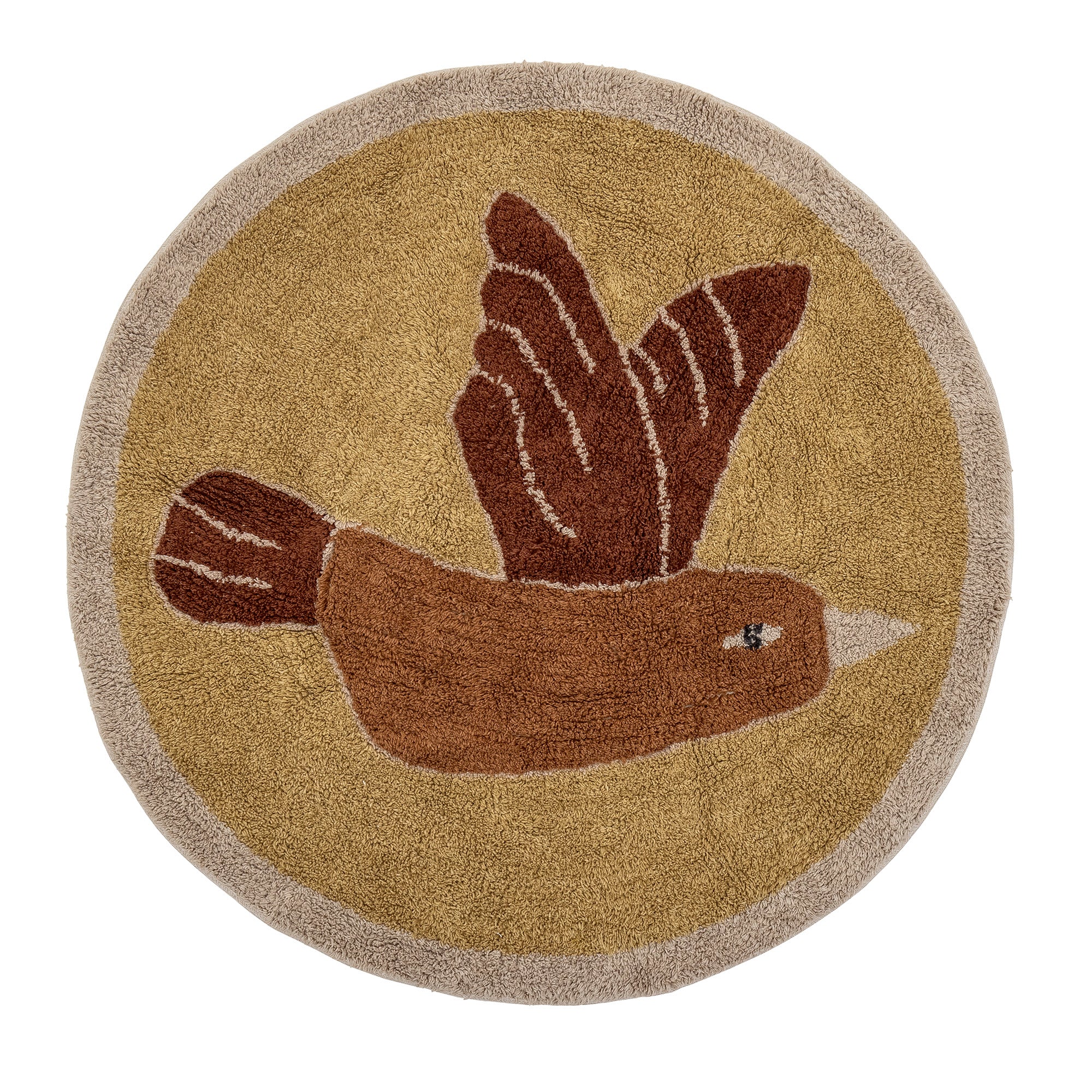 Tapis à l’imprimé d’oiseau. Couleurs chaudes pour créer une ambiance cosy et chaleureuse. Très doux, il est parfait pour jouer ou simplement poser vos pieds lorsque vous sortez du lit.