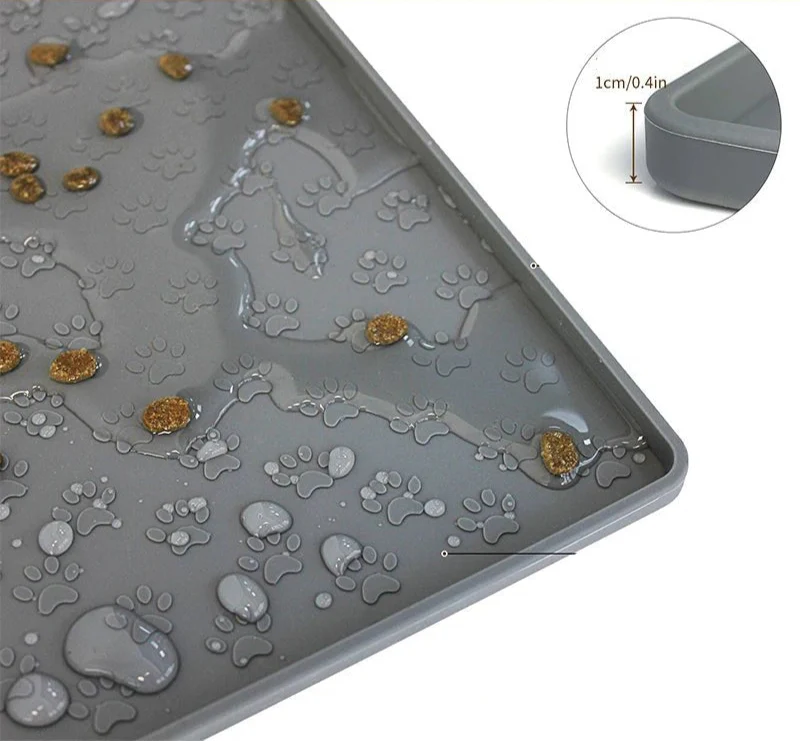 - Antidérapant : Les bords texturés du tapis garantissent que les gamelles restent en place, même pendant les repas les plus agités.
