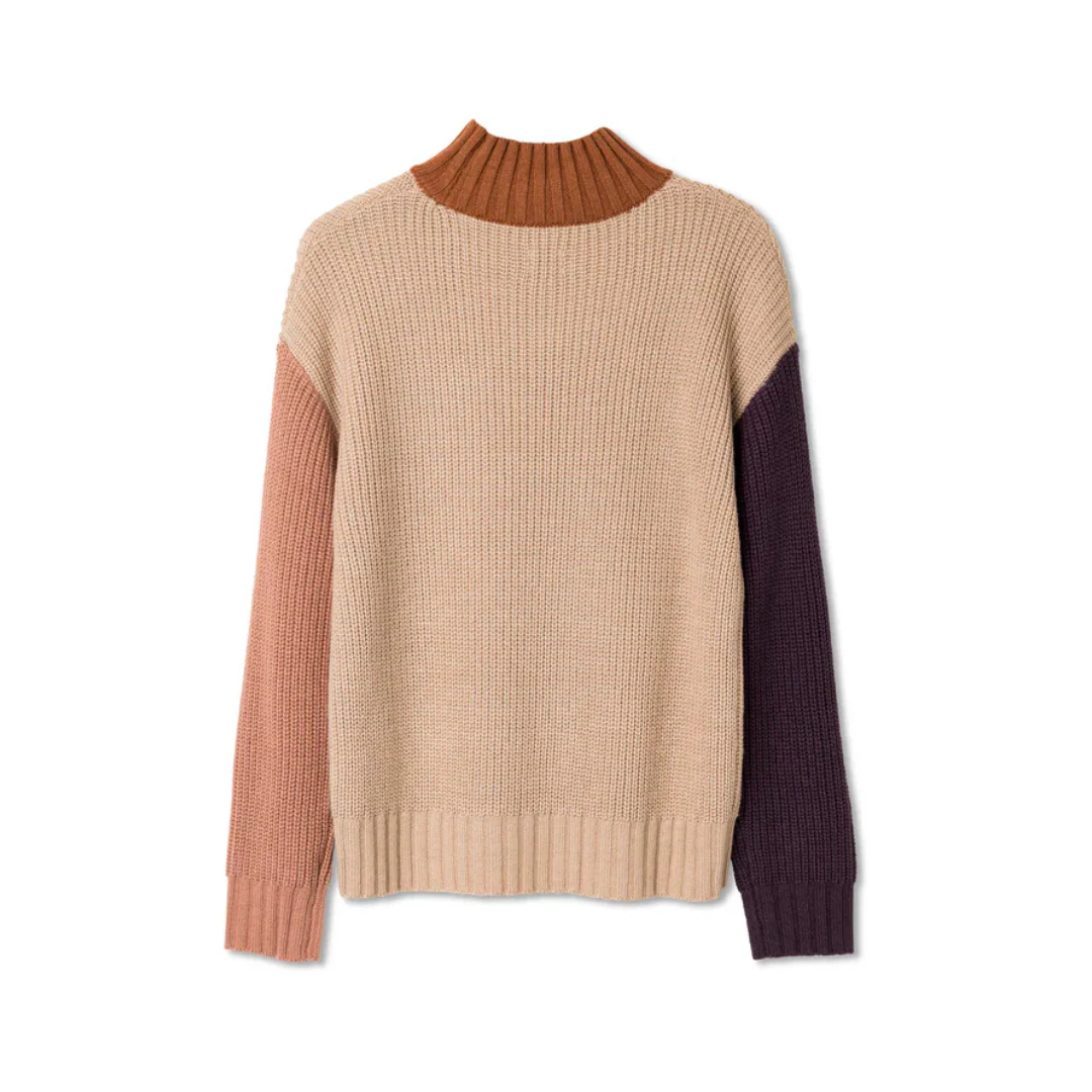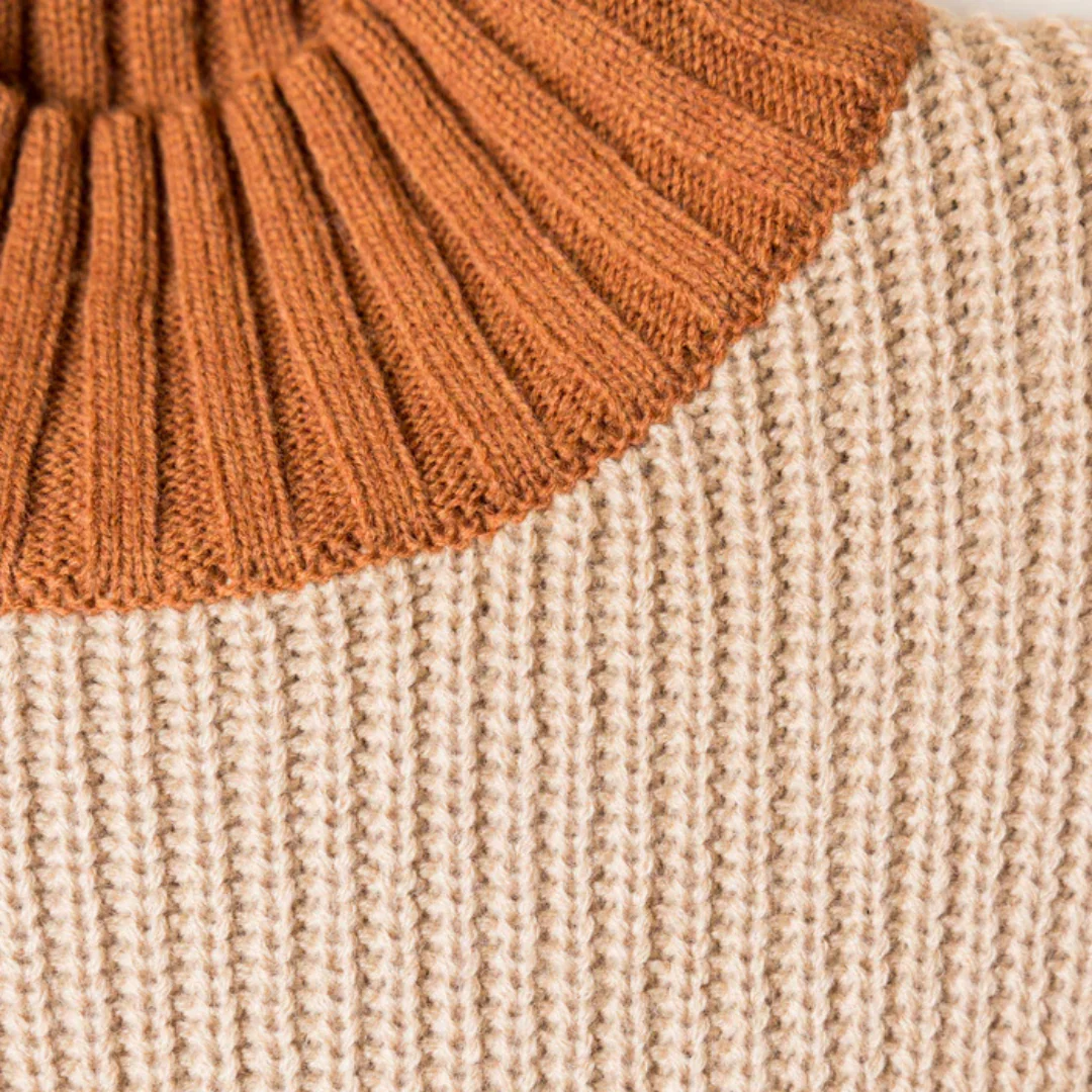 Le pull Swanford est un pull à col roulé confortable jusqu’aux hanches, dans un color block ton sur ton.