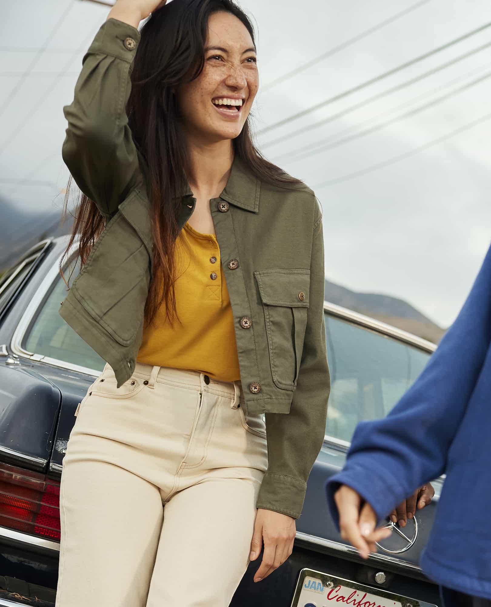Dobby en coton biologique teint en pièce avec juste une touche d’extensibilité, ce tissu sera un cheval de bataille pour les années à venir.