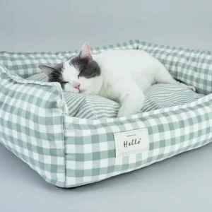 Panier Déhoussable Vichy En Coton Pour Chien Et Chat