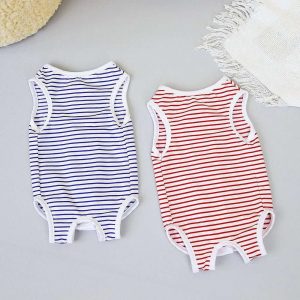 T-Shirt Post-Opératoire Chien Rayé Bleu